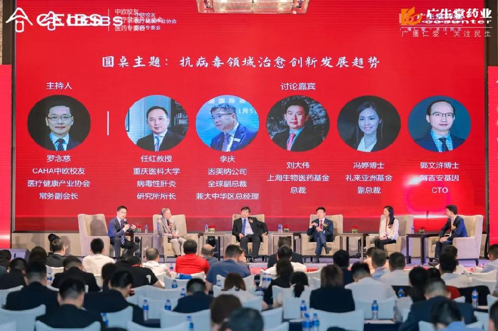 圓桌論壇環(huán)節(jié)由CAHA中歐校友醫(yī)療健康產(chǎn)業(yè)協(xié)會(huì)常務(wù)副會(huì)長(zhǎng)羅念慈主持,重慶醫(yī)科大學(xué)病毒性肝炎研究所所長(zhǎng)任紅教授、因美納公司全球副總裁兼大中華區(qū)總經(jīng)理李慶、上海生物醫(yī)藥基金總裁劉大偉、禮來亞洲基金副總裁馮婷博士、阿吉安基因副總經(jīng)理郭文滸博士圍繞“抗病毒領(lǐng)域治愈創(chuàng)新發(fā)展趨勢(shì)”議題展開了熱烈討論。大咖們思維的碰撞,擦出智慧的火花,大家共討前沿課題,為學(xué)術(shù)領(lǐng)域的發(fā)展探明了方向。